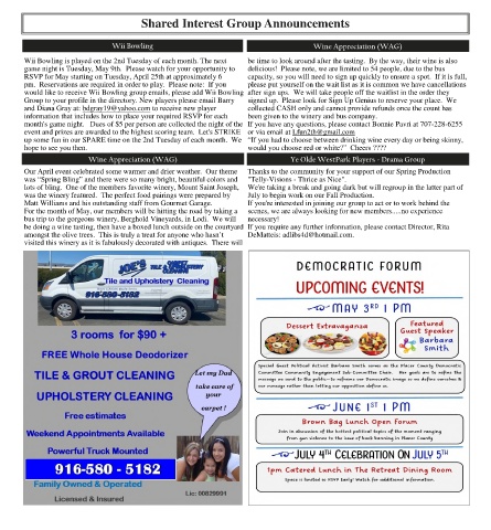 month's game night. Dues of $5 per person are collected the night of the If you have any questions, please contact Bonnie Pavri at 707-228-6255