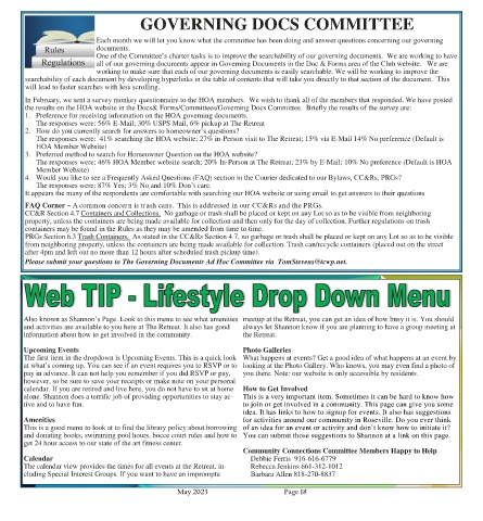 4. Would you like to see a Frequently Asked Questions (FAQ) section in the Courier dedicated to our Bylaws, CC&Rs, PRGs?