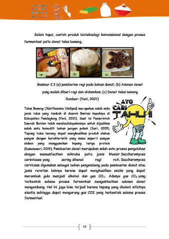 yang sudah diberi ragi dan didiamkan; (c) Donat talas beneng