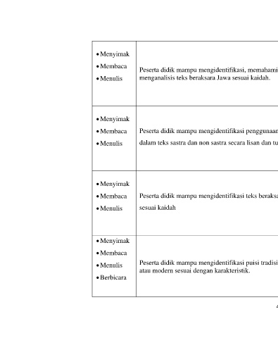 • Membaca Peserta didik mampu mengidentifikasi teks beraksara jawa Aksara Jawa (murda,