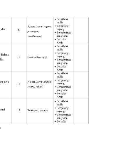 • Menulis menganalisis teks beraksara Jawa sesuai kaidah. pasangan, • Berkebhinak