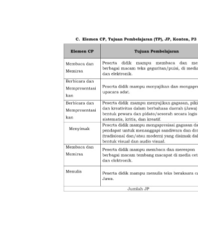 C. Elemen CP, Tujuan Pembelajaran (TP), JP, Konten, P3