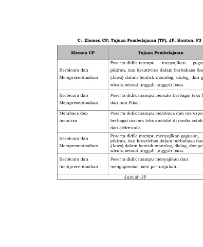 C. Elemen CP, Tujuan Pembelajaran (TP), JP, Konten, P3