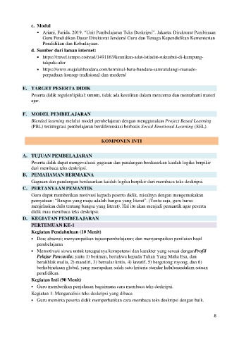 ▪ Ariani, Farida. 2019. “Unit Pembelajaran Teks Deskripsi”. Jakarta: Direktorat Pembinaan