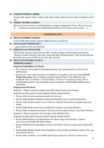 ▪ Peserta didik diminta menulis secara utuh teks deskripsi berdasarkan kerangka yang telah