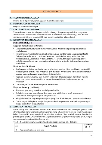 Tabel 1.5 Menilai kemampuan peserta didik mempresentasikan teks deskripsi