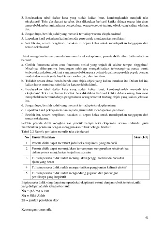 Bagi peserta didik yang dapat memproduksi eksplanasi sesuai dengan rubrik tersebut, nilai