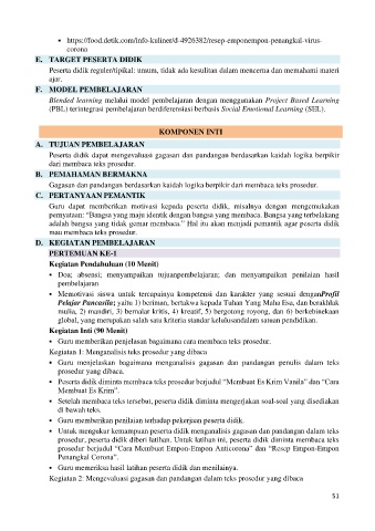 prosedur, peserta didik diberi latihan. Untuk latihan ini, peserta didik diminta membaca teks