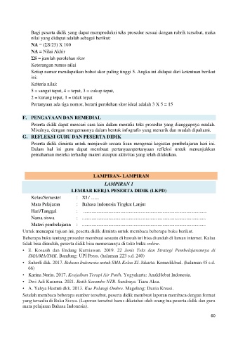 Bagi peserta didik yang dapat memproduksi teks prosedur sesuai dengan rubrik tersebut, maka