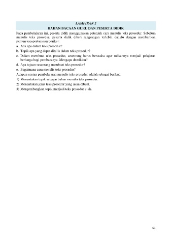 Adapun urutan pembelajaran menulis teks prosedur adalah sebagai berikut: