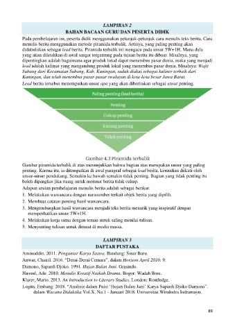 penting. Karena itu, ia ditempatkan di awal paragraf sebagai lead berita, kemudian diikuti oleh