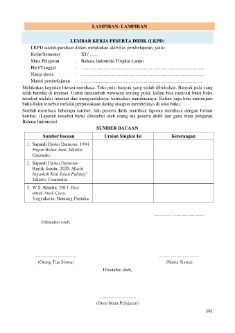 Setelah membaca beberapa sumber, lalu peserta didik membuat laporan membaca dengan format