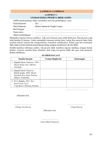 Setelah membaca beberapa sumber, lalu peserta didik membuat laporan membaca dengan format
