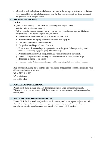 Bagi peserta didik yang dapat menulis teks puisi sesuai dengan rubrik tersebut, maka nilai yang