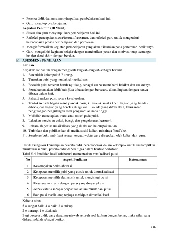 Tabel 5.4 Penilaian hasil kolaborasi mementaskan musikalisasi puisi
