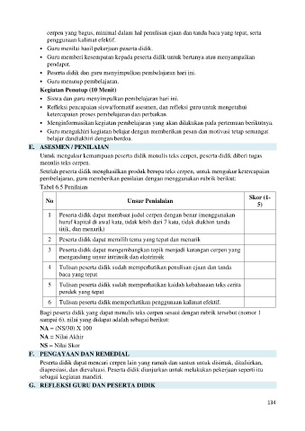 Bagi peserta didik yang dapat menulis teks cerpen sesuai dengan rubrik tersebut (nomor 1