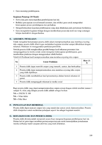Bagi peserta didik yang dapat mempresentasikan cerpen sesuai dengan rubrik tersebut (nomor 1