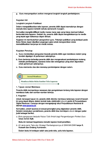berbentuk teks laporan. Setelah itu, peserta didik dapat mengirimkannya ke media