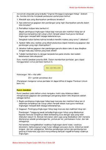 2. Gagasan: Pentingnya lingkungan hidup bagi manusia dan makhluk hidup lain.