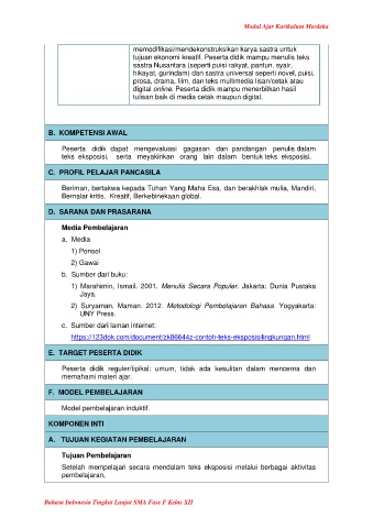 Bahasa Indonesia Tingkat Lanjut SMA Fase F Kelas XII