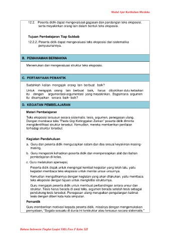 12.2. Peserta didik dapat mengevaluasi gagasan dan pandangan teks eksposisi,