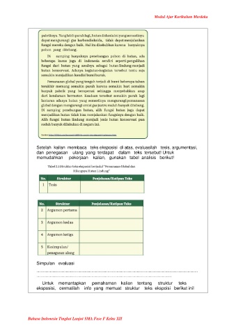 Setelah kalian membaca teks eksposisi di atas, evaluasilah tesis, argumentasi,