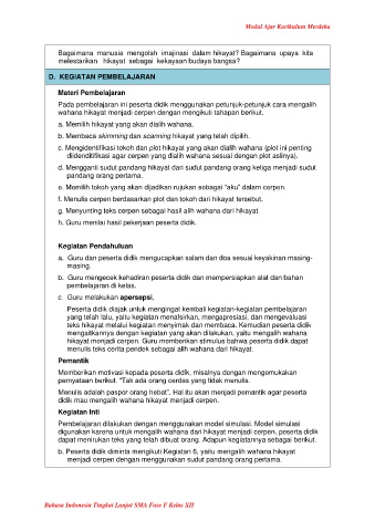 b. Peserta didik diminta mengikuti Kegiatan 6, yaitu mengalih wahana hikayat