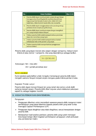Peserta didik yang dapat menulis teks cerpen dengan sempurna, meliputi enam