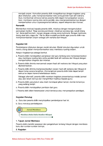 menjadi cerpen. Kemudian peserta didik mengaitkannya dengan kegiatan yang