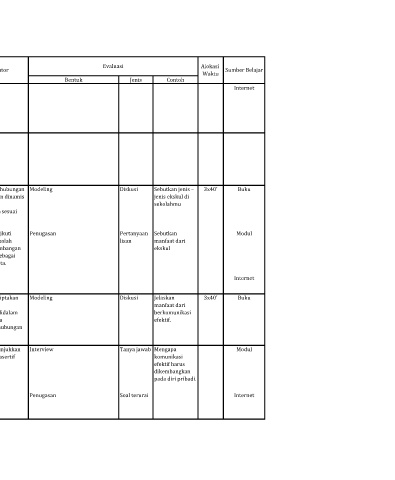 B. Menjalin I. Kecerdasan 1. Eksis di a. Mampu Mengetahui Menciptakan hubungan Modeling Diskusi Sebutkan jenis – 3x40' Buku