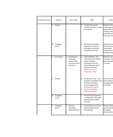 Kompetensi Dasar Karakter Materi Ajar KBM Indikator Sumber Belajar