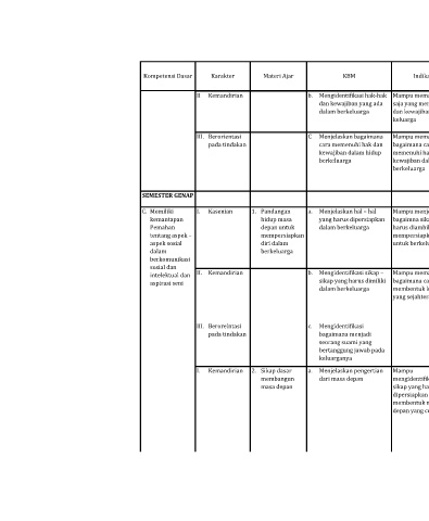 Kompetensi Dasar Karakter Materi Ajar KBM Indikator Sumber Belajar