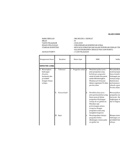 A. Menerapkan I. Toleransi 1. Pergaulan sehat a. Mendiskripsikan jenis – Menyebutkan berbagai Penugasan Kuis Sebutkan 3x40' Internet: