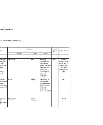 A. Menerapkan I. Toleransi 1. Pergaulan sehat a. Mendiskripsikan jenis – Menyebutkan berbagai Penugasan Kuis Sebutkan 3x40' Internet: