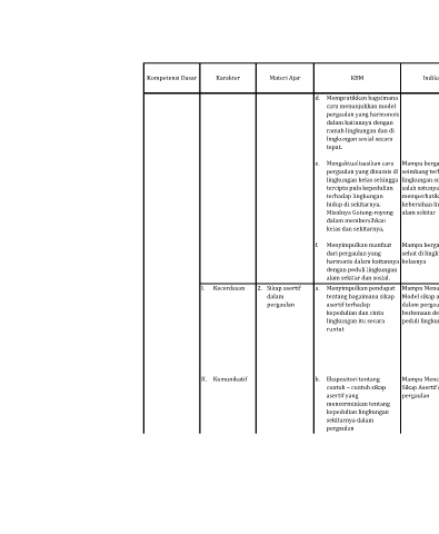 Kompetensi Dasar Karakter Materi Ajar KBM Indikator Sumber Belajar