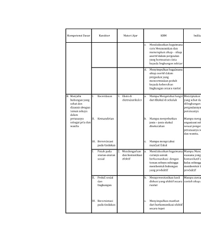Kompetensi Dasar Karakter Materi Ajar KBM Indikator Sumber Belajar