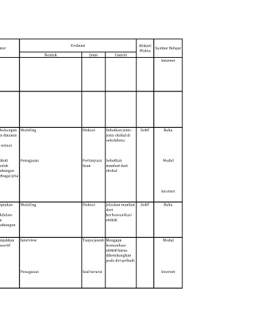 B. Menjalin I. Kecerdasan 1. Eksis di a. Mampu Mengetahui fungsi Menciptakan hubungan Modeling Diskusi Sebutkan jenis – 3x40' Buku