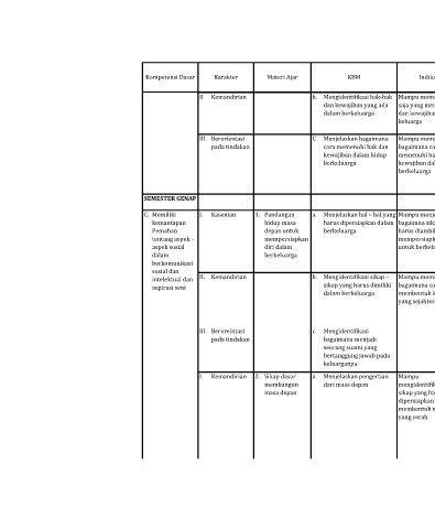 Kompetensi Dasar Karakter Materi Ajar KBM Indikator Sumber Belajar