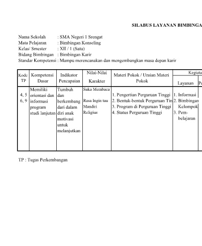 SILABUS LAYANAN BIMBINGAN DAN KONSELING