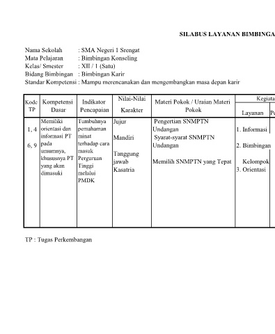 SILABUS LAYANAN BIMBINGAN DAN KONSELING