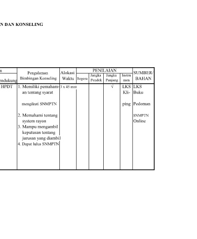 1, 4 Memiliki Tumbuhnya Jujur 1. Pengertian SNMPTN 1. Informasi HPDT 1. Memiliki pemaham- 3 x 45 mnt √ LKS LKS