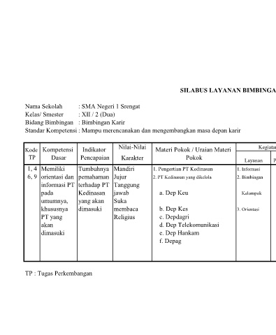 SILABUS LAYANAN BIMBINGAN DAN KONSELING