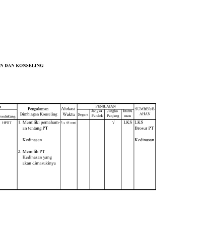TP Dasar Pencapaian Karakter Pokok Layanan Pendukung Bimbingan Konseling Waktu Segera Pendek Panjang men AHAN