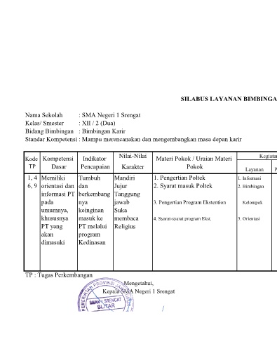 SILABUS LAYANAN BIMBINGAN DAN KONSELING