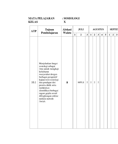 MATA PELAJARAN : SOSIOLOGI SEMESTER : 1 (Gasal)