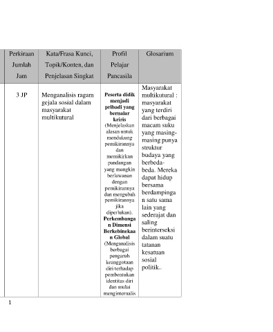 1. Memahami hekekat gelaja sosial dari berbagai 3 JP Menganalisis ragam Peserta didik multikutural :