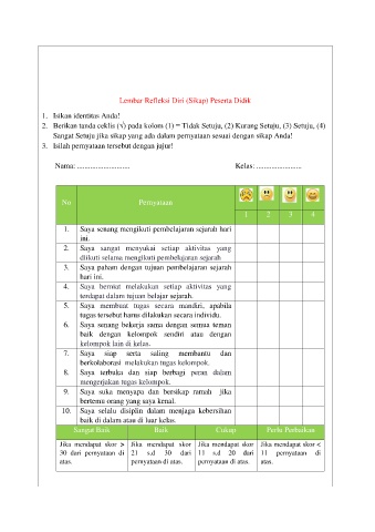 Lembar Refleksi Diri (Sikap) Peserta Didik
