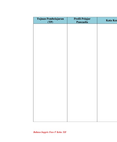 Tujuan Pembelajaran Profil Pelajar Kata Kunci Topik/Konten Perkiraan Glosarium