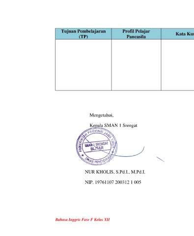 Tujuan Pembelajaran Profil Pelajar Kata Kunci Topik/Konten Perkiraan Glosarium
