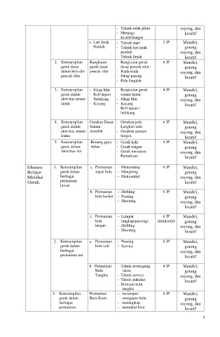 Elemen 1. Keterampilan a. Permainan - Menendang 6 JP Mandiri,